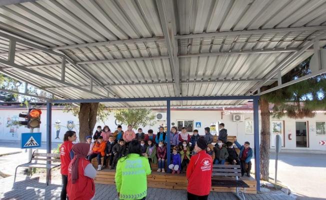 Çocuklara eğitim parkında trafik kuralları öğretiliyor