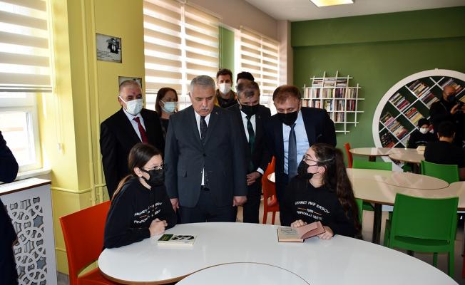 Sonrasında Vali Yıldırım kütüphaneyi gezerek öğrencilerle sohbet etti.