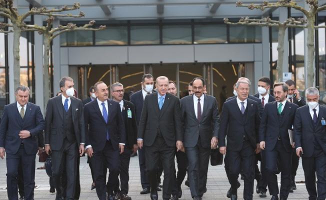 Sadece Avrupa güvenlik mimarisinin değil küresel güvenlik algısının da değiştiği bir süreçten geçildiğine işaret eden Cumhurbaşkanı Erdoğan, Ukrayna ve Rusya savaşının birinci ayını geride bıraktığını belirterek, NATO müttefikleri olarak hem güncel gelişmeleri hem de ittifakın cari güvenlik ortamında aldığı tedbirleri değerlendirmek üzere liderler seviyesinde bir araya geldiklerini kaydetti.