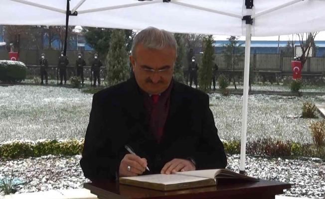 Hava ve Kara Şehitliğine çelenk sunma törenin ardından şehitler anısına saygı duruşu yapıldı. İstiklal Marşı’nın okunduğu törende tüfek atışı yapıldı. Diyarbakır Valisi Münir Karaloğlu, şehitlik defterini imzalayarak duygu ve düşüncelerini yazdı.
