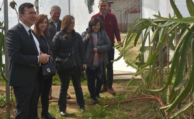 Efeler Kaymakamı Cemal Şahin ilçe genelinde ejder meyvesi olarak bilinen pitaya üretimi yapan çiftçileri seralarında ziyaret ederek sohbet etti.