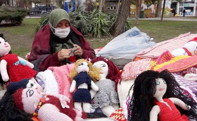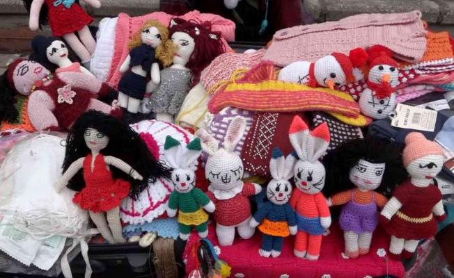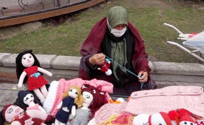 Aksaray’da amigurumi ve el örgüsü kıyafetler yaparak çarşıda satan 59 yaşındaki Gülsüm Telli, bu işten elde ettiği gelirle hem torununu okutuyor hem de hasta eşine bakıyor.