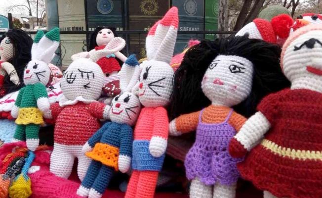 Kamuda çalışırken Lapurmi hastalığı nedeniyle burnunu kaybeden eşinin malulen kazandığı emekli maaşı torununun okul masraflarına yetişmediği için 3 yıl önce tezgah açan Gülsüm Telli, 15 TL’den başlayıp 50 TL’ye kadar sattığı amigurumi bebeklerle eşinin ilaç ve torununun okul masraflarına katkı sağlıyor.