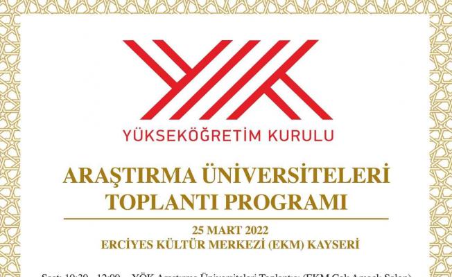 Erciyes Üniversitesi (ERÜ) 25 Mart 2022’de düzenlenecek olan Yükseköğretim Kurulu (YÖK) Araştırma Üniversiteleri Toplantısı’na ev sahipliği yapacak. Düzenlenecek toplantıya YÖK Başkanı Prof. Dr. Erol Özvar ile araştırma üniversitelerinin Rektör ve Rektör yardımcıları da katılacak.
