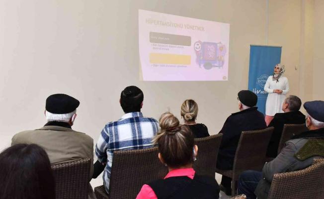 Necmettin Erbakan Parkı Uluçınar Sosyal Yaşam Merkezi’nde gerçekleştirilen seminerde, Diyetisyen Eda Nur Usta’nın yaptığı sunum ile birlikte vatandaşlara yaşlılık ve tuz tüketimi hakkında bilgiler verildi. Sunumda; yaşlılık, artan tuz tüketiminin tansiyona etkisi, hipertansiyona yönelik beslenme şekilleri ve tuz tüketimini azaltmanın yolları gibi konular işlendi.