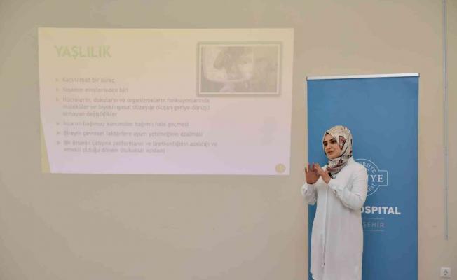 Necmettin Erbakan Parkı Uluçınar Sosyal Yaşam Merkezi’nde gerçekleştirilen seminerde, Diyetisyen Eda Nur Usta’nın yaptığı sunum ile birlikte vatandaşlara yaşlılık ve tuz tüketimi hakkında bilgiler verildi. Sunumda; yaşlılık, artan tuz tüketiminin tansiyona etkisi, hipertansiyona yönelik beslenme şekilleri ve tuz tüketimini azaltmanın yolları gibi konular işlendi.
