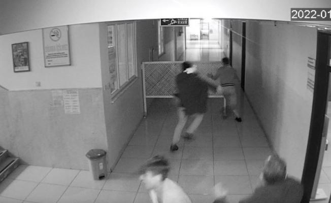 Öğrenci Gaffari T. ile Ömer T.’nin babalarını bıçaklı saldırganın elinden almak uğraştığı anlar görüntüye yansırken, saldırgan Abdullah Ç.’nin Ömer T.’yi elinde bıçakla koridorda kovalamasını güvenlik kamerası saniye saniye kaydetti.