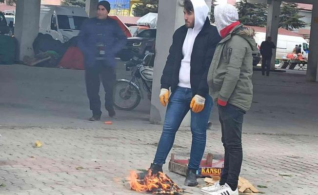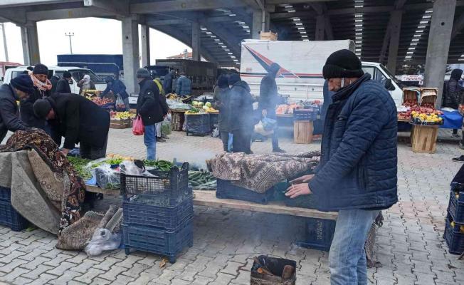 Hava sıcaklığının eksi 10 derecelere kadar düştüğü Afyonkarahisar’ın Şuhut ilçesinde, pazarcı esnafı soğuk havayla tezgahlarının yanında yaktıkları ateşle mücadele ediyor.