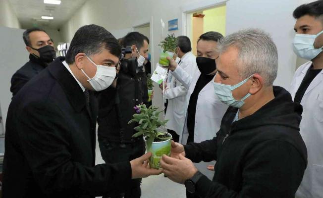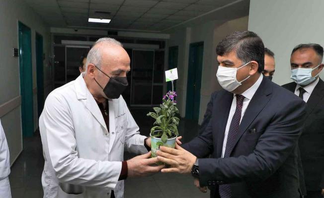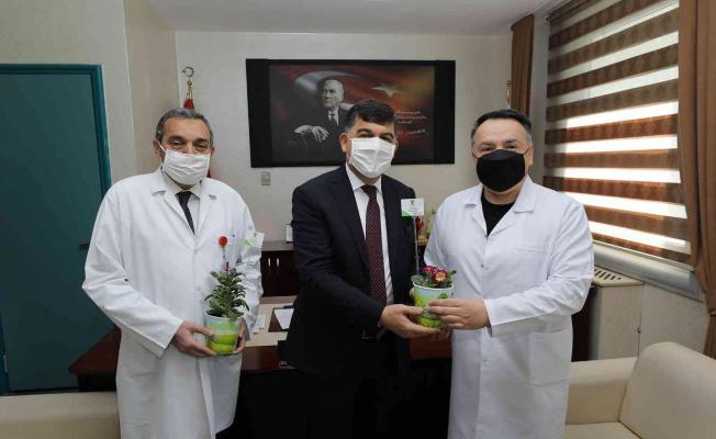 Fadıloğlu, sağlık çalışanlarının 14 Mart Tıp Bayramı’nı tebrik etti ve kendilerine belediye bünyesinde hizmet üreten Peyzaj Bitkileri Üretim Serası’nda yetiştirilen, bellis, şebboy, çuha, cin karanfili ve portakal nergisi cinsi çiçeklerden armağan etti. Sağlık çalışanlarını çalıştıkları birimlerde ziyaret eden Başkan Fadıloğlu, özverili çalışmalarından ötürü teşekkür etti.