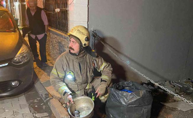 İtfaiye eri evde bulduğu tencerenin içine 6 kedi yavrusunu koyarak yangından kurtardı.