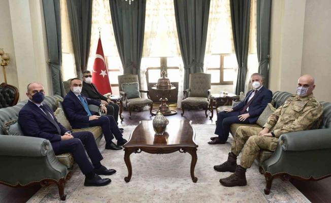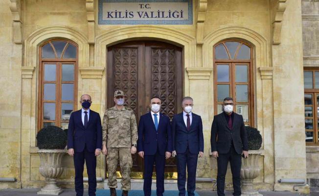 Gaziantep’te geçirdiği kalp krizi sonucu hayatını kaybeden Komiser Yardımcısı Mehmet Ali Kurtoğlu’nun ailesine taziye ziyaretinde bulunmak üzere Kilis’e gelen Gaziantep Valisi Sayın Davut Gül, Gaziantep İl Jandarma Komutanı Tuğgeneral Hidayet Arıkan ve Gaziantep İl Emniyet Müdürü Mustafa Emre Başbuğ, Vali Recep Soytürk’ü makamında ziyaret ettiler. Daha sonra Kilis Belediye Başkanı Servet Ramazan ile Kilis ve Gaziantep protokolünün katılımıyla Komiser Yardımcısı Mehmet Ali Kurtoğlu’nun ailesine taziye ziyaretinde bulundular.