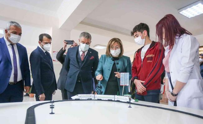 “Gençlere bir anne gözüyle baktığım zaman büyük bir gelecek görüyorum” diyen Başkan Şahin, “Geleceğimizin ne kadar güçlü olduğunu görüyorum. Geleceğimizin ne kadar emin ellerde olduğunu görüyorum ve geleceğimize ne kadar güvenmemiz gerektiğini görüyorum. Bence en büyük alkışı gençlerimiz hak ediyor. Okullarda doğru modeli yakalarsanız gençlerimizin başarısı da kaçınılmaz oluyor. Başarı tesadüf değildir, başarı tercihle başlar. Okul ziyaretimde gençlerin ürettiği çalışmalara baktığımızda dünyaya ne kadar faydalı amaçlar için kafa yorulduğunu görüyorum. Bu da bizlere gösteriyor ki biz doğru yoldayız. Doğru yol bizi geleceğe taşıyacak” şeklinde konuştu.