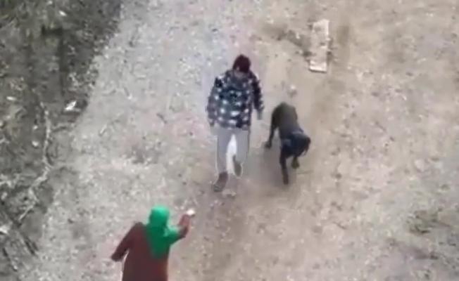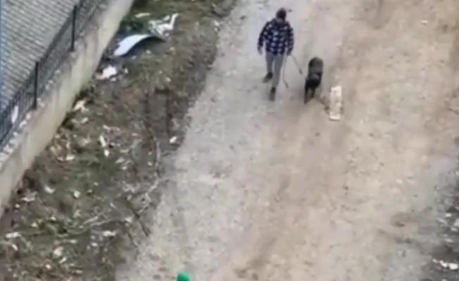 Bu anları gören bir kadın köpeğine şiddet uygulayan şahsa, “Köpeğe niye vuruyorsun? Onun canı yok mu? Yemin olsun seni şikayet edeceğim.