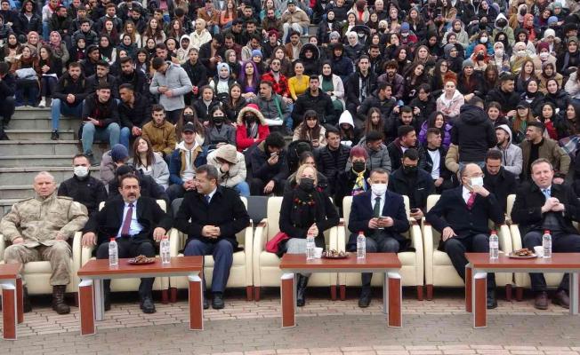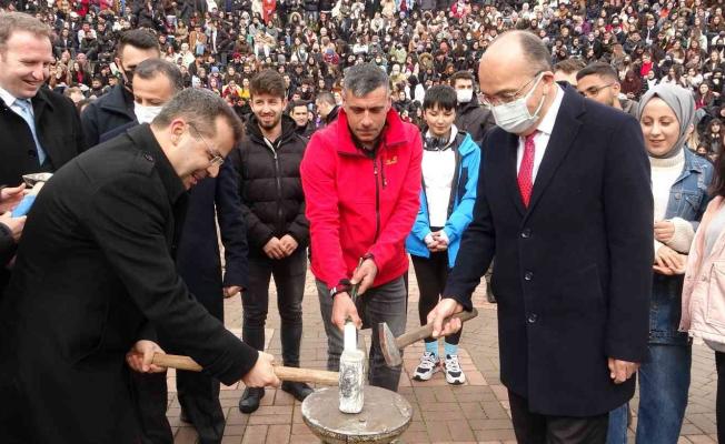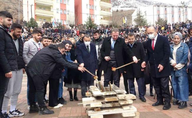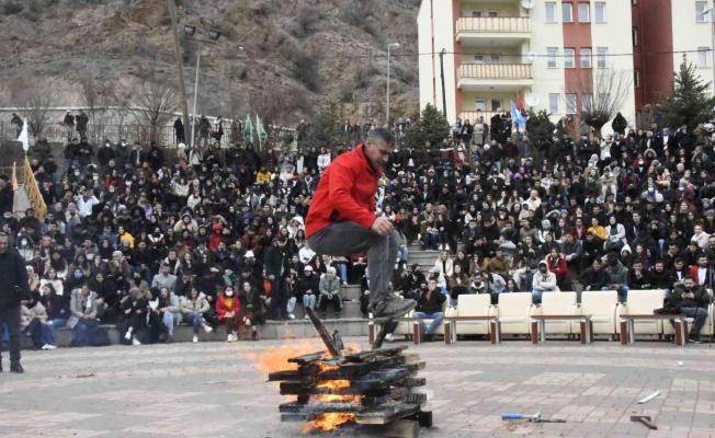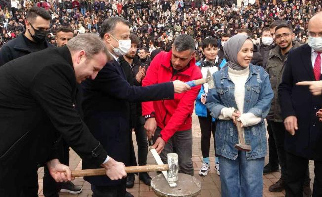 Gümüşhane Üniversitesi’nde Nevruz Bayramı, soğuk hava ve kar yağışına rağmen coşkuyla kutlandı. Gümüşhane Meslek Yüksekokulu amfi alanında düzenlenen Nevruz Bayramı programına, Gümüşhane Valisi Kamuran Taşbilek ile eşi Sibel Taşbilek, Cumhuriyet Başsavcısı Veli Ecir, Adalet Komisyonu Başkanı Bayram Ünlü, Gümüşhane Üniversitesi Rektörü Prof. Dr. Halil İbrahim Zeybek, İl Emniyet Müdürü Celal Taşci, İl Jandarma Komutanı İsmail Gökcek katıldı. Pandeminin ardından ilk kez kutlanan Nevruz Bayramına Gümüşhane Üniversitesi öğrencileri yoğun katılım gösterdi. Programda ilk olarak halk oyunları ekipleri sahne aldı daha sonra Gümüşhane Valisi Kamuran Taşbilek ve Cumhuriyet Başsavcısı Veli Ecir Nevruz ateşini yaktı. Gümüşhane Valisi Kamuran Taşbilek ve protokol üyeleri daha sonra örs üzerinde demir dövdü.