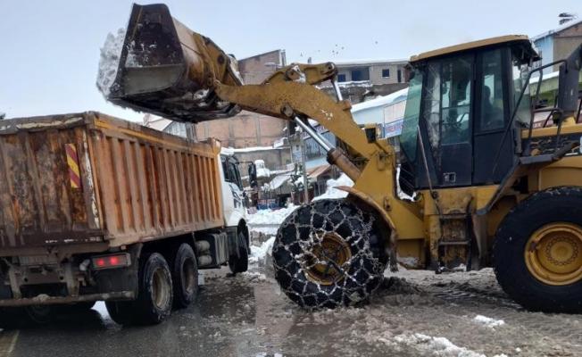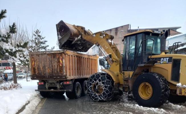 Bitlis’in Güroymak Belediyesi, kar yağışının ardından tuzlama ve kar taşıma çalışmalarını aralıksız sürdürüyor.