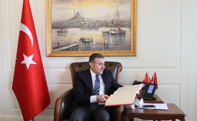 DÜZCE (İHA) – Basın İlan Kurumu (BİK) Sakarya Şube Müdürü İbrahim Çorbacı Düzce Valisi Cevdet Atay’a; “Hatay Devleti Resmi Gazetesi” isimli kitabı takdim etti.