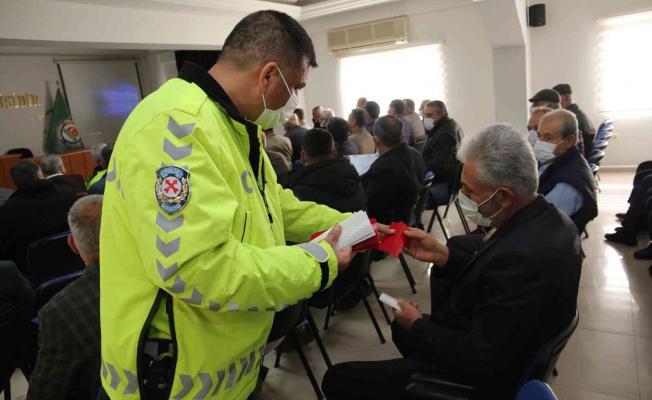 Seminer sonunda traktör kullanıcılarına yansıtıcı reflektör dağıtıldı.
