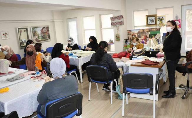 Yunusemre Belediyesi Topçuasım Hanımlar Lokali’nde eğitim alan kursiyerler bir yandan yeni hobiler edinirken bir yandan da ev ekonomilerine katkı sağlıyor.