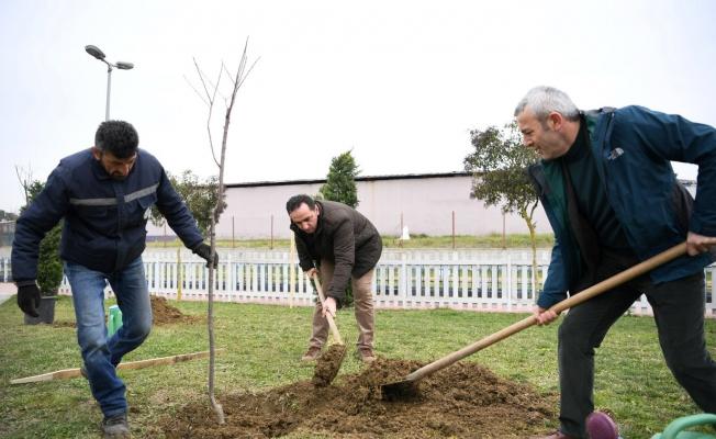 Konuyla ilgili açıklamalarda bulunan Başkan Kocaman, “Çocuklarımız organik meyve ile büyüsün diye bu yıl da 1100 meyve fidanını toprakla buluşturduk. Dünya genelinde iklim değişiklikleri yaşanmaktadır. Çocuklarımızın daha sağlıklı beslenmeleri için meyve fidanlarının dikimine devam ediyoruz. Geçen sene 550 erik, 550 Trabzon (Cennet) hurması, bu yıl da 550 kiraz ve 550 vişne fidanı ile 2200 fidan dikildi. Dalından meyveler bizden, yemesi sizden. Herkes istediği kadar toplayıp yiyebilir” dedi.