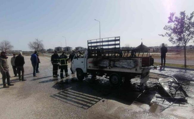 Herdford Caddesinde Titreyengöl istikametinden şehir merkezi istikametine seyir halindeki Serkan Candar’ın kullandığı 06 VRT 64 plakalı hurda yüklü kamyonet, çevreyolu köprüsüne 200 metre mesafede yanmaya başladı.