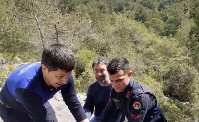 Muğla’nın Fethiye ilçesinde kayalıktaki çukur içerisinde mahsur kalan keçi, itfaiye ekipleri tarafından kurtarıldı.