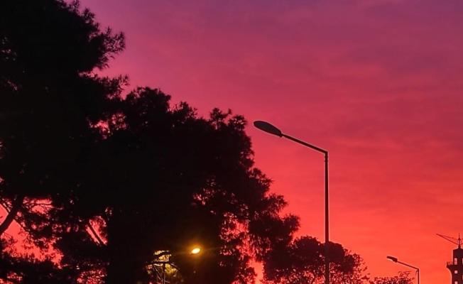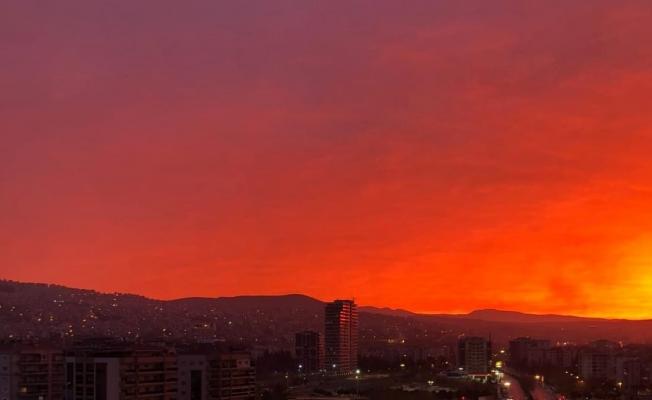 İzmir’de gün doğumu ile birlikte gökyüzünde kartpostallık görüntüler oluştu. Gün doğumu sırasında bulutlara yansıyan güneş ışınları gökyüzünün kızıl bir renk almasına neden oldu. Adeta kızıla boyanan gökyüzünü seyreden İzmirliler o anları cep telefonlarıyla ölümsüzleştirdi. Çok sayıda vatandaş, çektikleri fotoğraf ve görüntüleri sosyal medya hesaplarından paylaşarak ‘İzmir güne harika başladı’, ‘Kızıl gökyüzü İzmir’e çok yakıştı’ gibi yorumlarda bulundu.