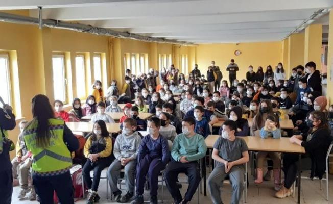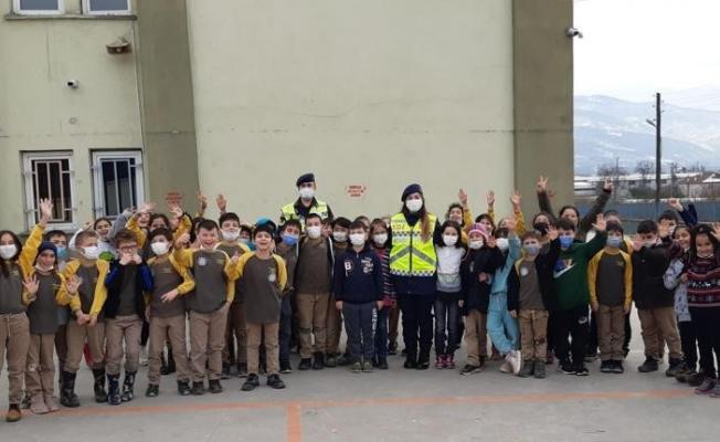 DÜZCE(İHA) – Düzce’de jandarma trafik timleri okul okul gezerek geleceğin büyüklerine trafik eğitimi veriyor.