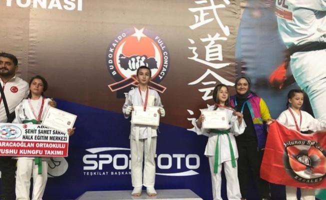 Sakarya’da düzenlenen Wushu Budokaido Türkiye Şampiyonası’nda Bilecikli sporcular elde ettikleri 1 altın, 1 gümüş ve 5 bronz madalya ile turnuvaya damga vurdular. Bilecik Gençlik ve Spor İl MüdürÜ Yasin Yılmaz başarılı sporcuları tebrik ederek, “Müdürlüğümüz tarafından il genelinde başlatılan alt yapı odaklı çalışmalarda Türkiye dereceleri gelmeye devam ediyor. Düzenlenen ulusal yarışmalarda yeni dereceler wushu, judo ve halter branşlarından geldi. Wushu Budokaido Türkiye Şampiyonası’nda alt minik erkekler kategorisinde +35 kiloda yarışan Ahmet Yusuf Göksu altın madalya, yıldız kız kategorisinde 35 kiloda yarışan Duru Duran gümüş madalya, minik kız kategorisinde 35 kiloda yarışan Hicret Ceylin Kalincik bronz madalya, alt minik kız kategorisinde 35 kiloda yarışan Esma Betül Aykut bronz madalya, yıldız kız kategorisinde 35 kiloda yarışan Hatice Helin Özer bronz madalya kazanırken, alt minik erkek kategorisinde 25 kiloda yarışan Muhammet Emir Kalincik, bronz madalya kazandı” dedi.