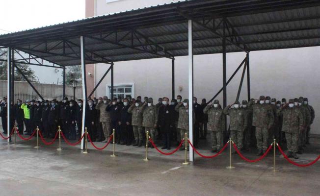 El Bab Çıldıroba Üs Bölgesi 17. Komando Tugay Komutanlığı emrinde kepçe operatörü olarak görev yapan ve dün gece kalp krizi geçirmesi sonucu kaldırıldığı Kilis Devlet Hastanesi’nde müdahaleye rağmen kurtarılamayan Türeme için Kilis Özel Harekat Şube Müdürlüğü yerleşkesinde tören düzenlendi.