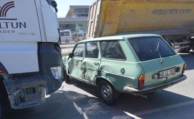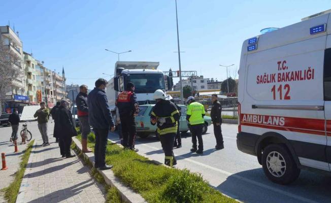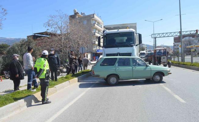 Aydın’ın Çine ilçesinde meydana gelen trafik kazasında kamyon ile otomobil çarpıştı. Kazada, kamyon, önüne aldığı otomobili metrelerce sürüklerken, kazada 1 kişi yaralandı.