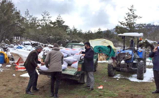 Denizli’de kar yağışında ağılları yıkılan ve hayvanları telef olan besi yetiştiricilerine yönelik Tarım ve Orman İl Müdürlüğü koordinesinde ücretsiz yem dağıtımı gerçekleştirildi.