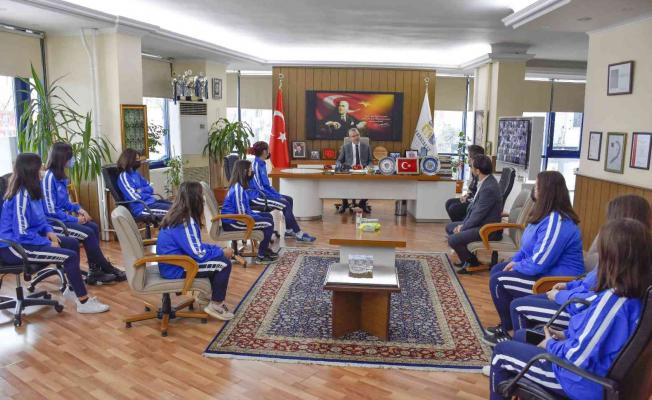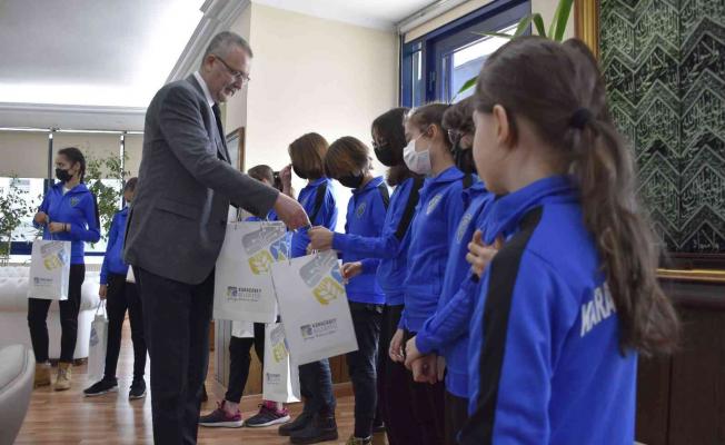 Başkan Özkan, Karacabey Belediyespor Genç Kız Voleybol Takımı ile U12 ve U14 Kız Basketbol Takımı sporcuları ile eğitmenleri Burak Ünal ve Yakup Özden’le de görüştü. Ziyarette basketbol takımı hakkında bilgi veren Antrenör Yakup Özden, “Bursa’da oynanan müsabakalarda takımımız 3. oldu. Konya’da çeyrek final oynamaya hak kazandık.