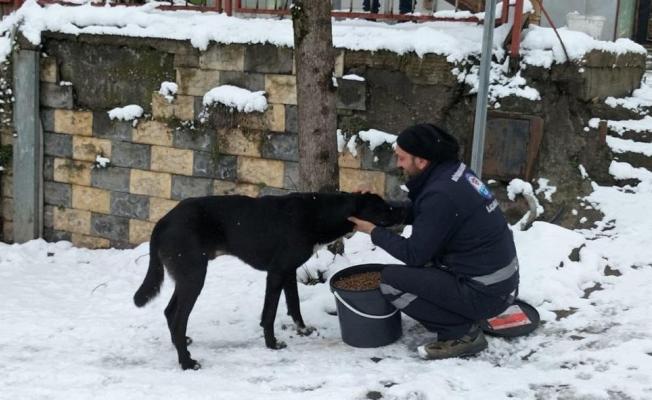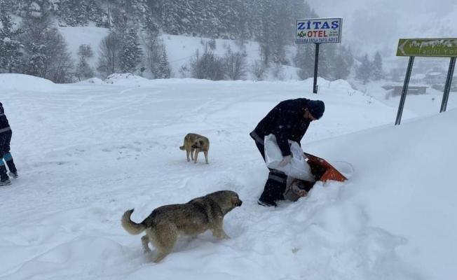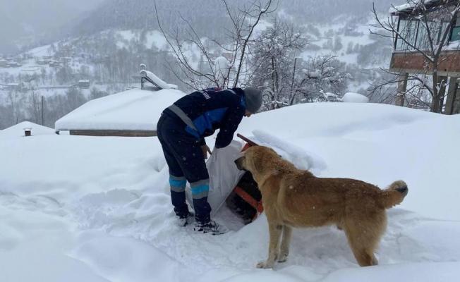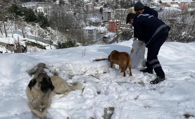Trabzon Büyükşehir Belediyesi, şehirde etkisini gösteren kar yağışının ardından sahipsiz canları unutmadı.