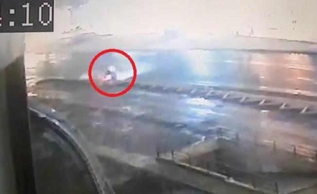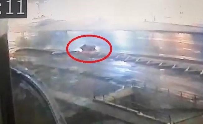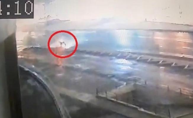 Polis ekipleri yolda güvenlik önlemi alırken, kaza anı bir işyerinin güvenlik kamerasına anbean yansıdı.
