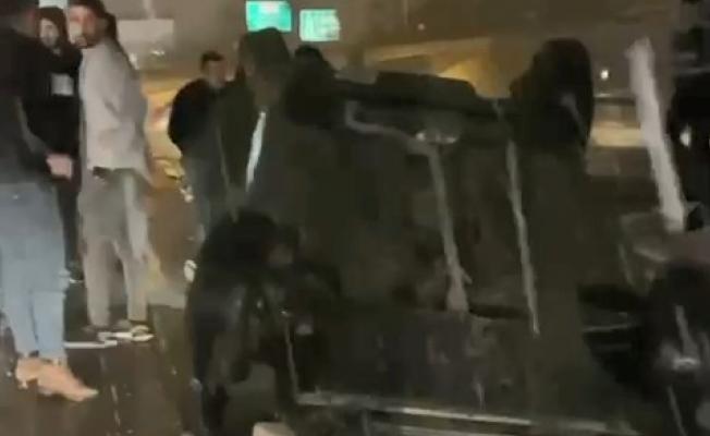 Kaza sonrası hurdaya dönen otomobil olay yeri vatandaşlar tarafından cep telefonuyla kaydedilirken, kısa sürede olay yerine polis, itfaiye ve sağlık ekibi yönlendirildi.