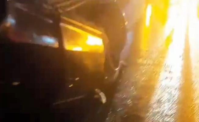 Yoldan geçen vatandaşlar sürücünün araçta sıkıştığını fark edince 112 Acil Çağrı Merkezine ihbarda bulundu.