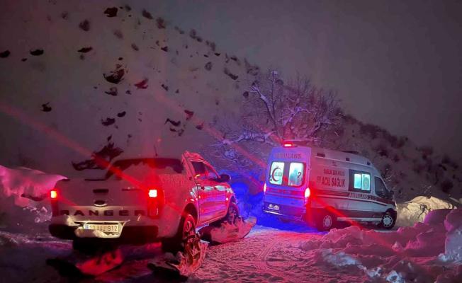 Bitlis merkeze bağlı Güven köyünde doğum sancısı başlayan hamile kadın, karlı dağlar aşılarak hastaneye ulaştırıldı.