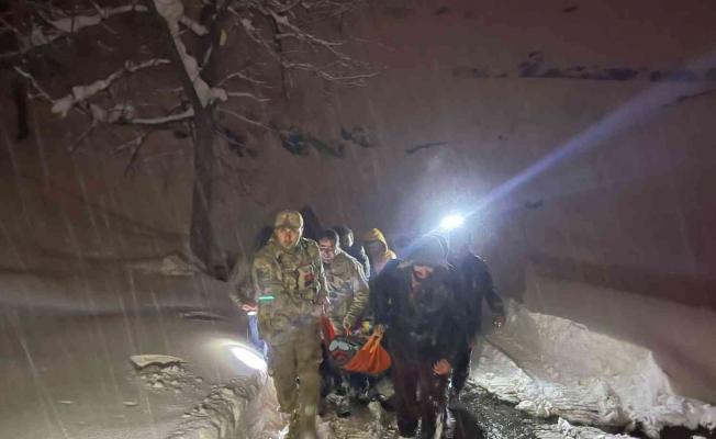 Bitlis merkeze bağlı Güven köyünde doğum sancısı başlayan hamile kadın, karlı dağlar aşılarak hastaneye ulaştırıldı.