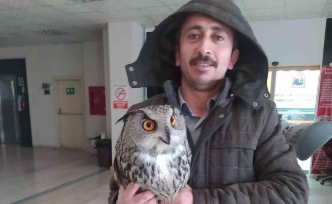 Kargaların saldırdığı baykuş Hakkari Valiliği’ne sığındı