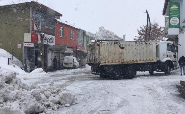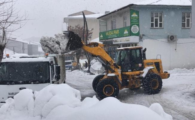 Karlıova’da kar, kamyonlarla taşınmaya devam ediyor