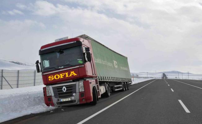 Kars’ın Sarıkamış ilçesinden Gürcistan’a gitmekte olan tır, Karahamza köyü yakınlarında sürücüsünün direksiyon hakimiyetini kaybetmesi sonucu yoldan çıkarak kara saplandı.