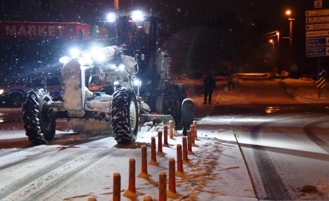 Kartepe Belediyesi ekipleri, dün gece saatlerinde başlayan kar yağışı sebebiyle yolların kapanmaması için çalışmalarını sürdürüyor.