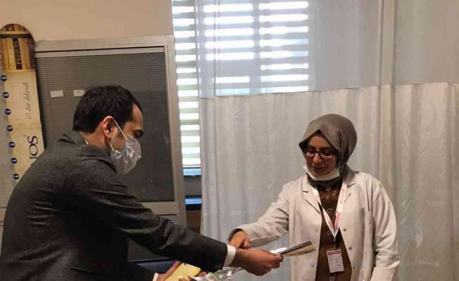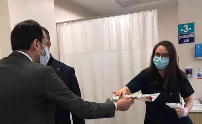 Daha sonra hastaneyi gezen Kaymakam Abdulhamid Uyar, sağlık çalışanlarının Tıp Bayramı’nı kutlayarak çiçek dağıttı.