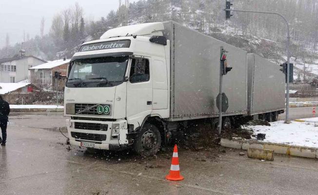 Edinilen bilgiye göre kaza; Geyras Mahallesi çevre yolu kavşağında meydana geldi. Kırmızı ışıkta bekleyen İbrahim K. idaresinde Volkswagen Passat marka otomobile Kazakistan uyruklu Mohammed P. idaresindeki iplik yüklü tır arkandan çarptı. Sürüşücünün direksiyon hakimiyetini kaybettiği tır refüje çarparak durabildi. Kazada hafi şekilde yaralanan tır sürücüsü ambulansla Tokat Devlet Hastanesine sevk edildi. Otomobil sürücüsü ve yanındaki yolcular ise kazayı yara almadan atlattı. Trafik ekipleri kazayla ilgili inceleme başlattı.