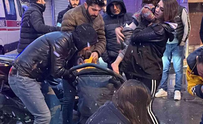 Yaralı kadın olay yerine gelen sağlık ekipleri tarafından ilk müdahalesi gerçekleştirilerek çocuğuyla birlikte hastaneye kaldırıldı. Vatandaşlar tarafından sakinleştirilen öfkeli adam, olay yerine gelen polis ekipleri tarafından gözaltına alındı.