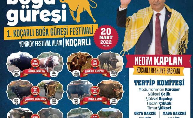 19 Mart Cumartesi günü kortej yürüyüşü ile başlayacak olan “Boğa Güreşi Festivali” 20 Mart Pazar günü ise Yeniköy Güreş Alanında gerçekleşecek olan güreşlerle devam edecek. Şampiyon boğalara ev sahipliği yapacak olan Koçarlı’da heyecanla güreşlerin başlaması ve yılın ilk güreşi olması dolayısıyla güreşe hasret kalan güreş severlerin yoğun ilgi göstermesi bekleniyor.