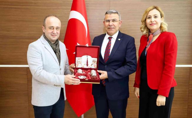 Veda ziyaretleri kapsamında Köşk Belediye Başkanı Nuri Güler’i de ziyaret eden Başhekim Osman Erönem, Köşk Belediye Başkanı Nuri Güler’e misafirperverliğinden dolayı teşekkür ederek, hatıra fotoğrafı çektirdi. Başkan Güler ise Köşk’teki görev süresi boyunca gerçekleştirdiği çalışmalardan dolayı Başhekim Erönem’e teşekkür ederek Köşk hatırası olarak hediye takdim etti.