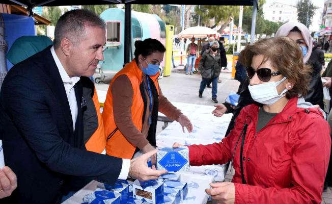 Kuşadası Belediyesi, Berat Kandili dolayısıyla ana hizmet binası önünde vatandaşlara kandil simidi ve lokum ikramında bulundu.