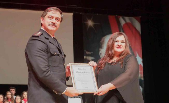 Programın sonunda Belediye Başkan Yardımcısı Abdullah Damcı, İl Emniyet Müdürü Necmettin Koç ve İl Jandarma Komutanı Vekili Albay Ahmet Altan, Gözdenur Tilki ve Handan Özdemirel’e teşekkür plaketi ve çiçek takdiminde bulundu.