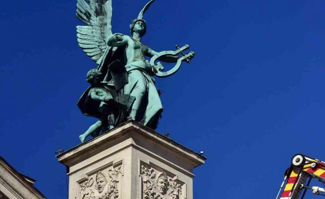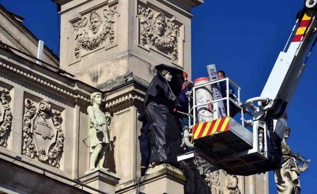 Geçtiğimiz gün Rusya tarafından gerçekleştirilen saldırıların hedefi olan Lviv kentindeki tarihi yapı ve heykeller, sünger ve brandalarla kapatılıyor. Lviv’deki tarihi opera binası üzerindeki heykeller de itfaiye ekipleri tarafından sarılarak korumaya alınıyor.